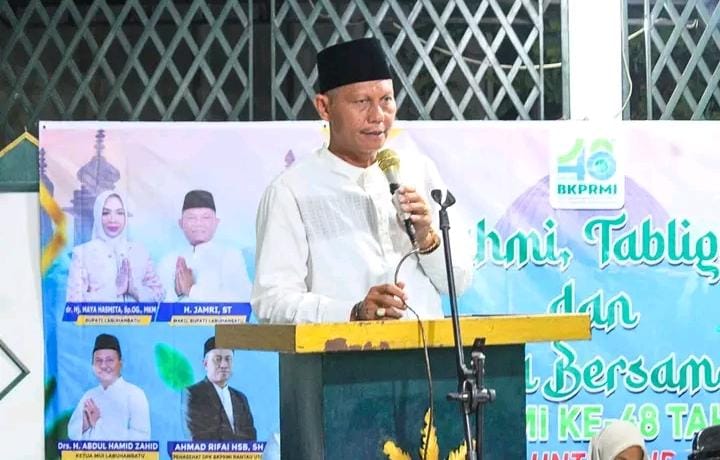 Bupati Labuhanbatu, dr. Hj. Maya Hasmita, Sp.OG, M.K.M, melalui Asisten I, Setdakab Labuhanbatu, Drs. Sarimpunan Ritonga, M.Pd, menghadiri tabligh akbar dan doa bersama milad Badan Komunikasi Pemuda Remaja Masjid Indonesia (BKPRMI) Kecamatan Rantau Utara ke-48 Tahun, di Masjid Agung Rantauprapat, Rabu (3/9) malam.