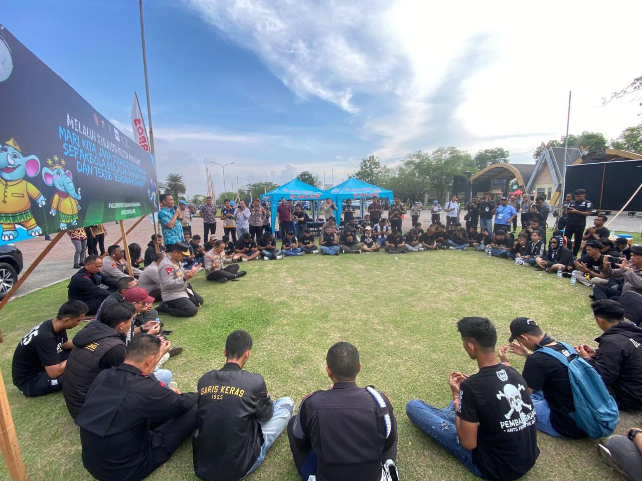 Suasana terlihat penuh keakraban duduk bersama Kapolda Riau dan para suporter makan bersama dan sekaligus doa bersama.
