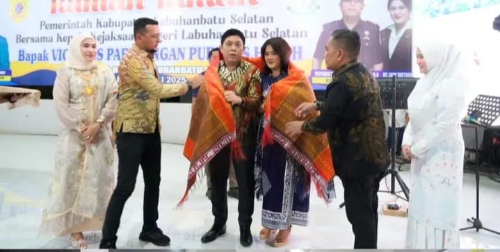 Labuhanbatu Selatan | cyberxpost.com – Bupati Labuhanbatu Selatan (Labusel), Fery Sahputra Simatupang menggelar acara ramah tamah untuk menyambut Kepala Kejaksaan Negeri (Kajari) Labuhanbatu Selatan yang baru, Victoris Parlaungan Purba. Kegiatan ini berlangsung hangat di Pendopo Rumah Dinas Bupati, Rabu (23/7/2025) malam.