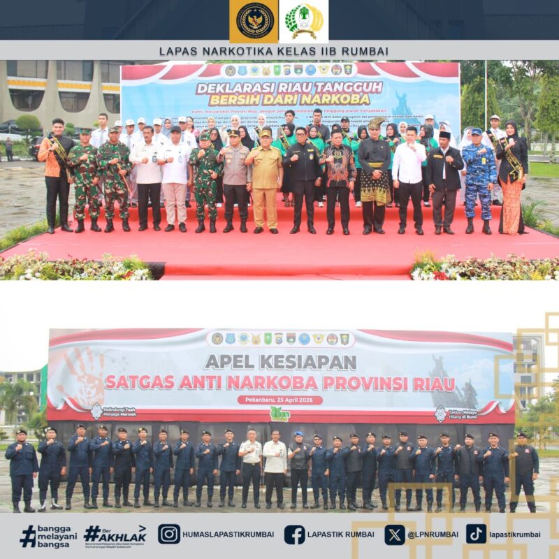 Melalui keikutsertaan dalam apel ini, Kanwil Ditjenpas Riau menunjukkan kesiapan dan kontribusi aktif dalam mendukung langkah konkret pemberantasan narkoba, sekaligus memperkuat output kolaborasi antarinstansi demi menciptakan lingkungan yang bersih dari narkoba dan generasi muda yang lebih terlindungi.