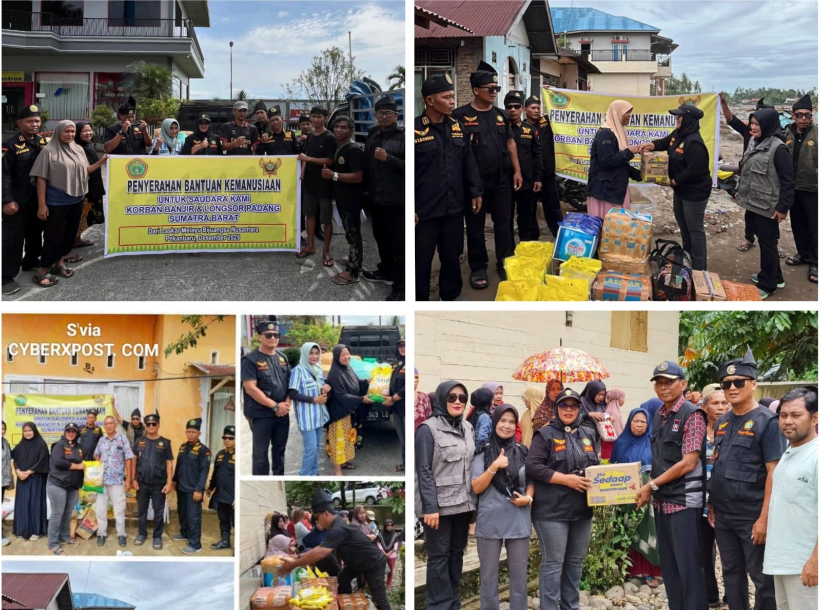 Pekanbaru | CyberXpost.com — Tim Relawan Laskar Melayu Bijuangsa Nusantara (LMB‑N) kembali menggelar “Penyerahan Bantuan Kemanusiaan Tahap II” bagi warga yang terdampak bencana alam di Sumatera Barat ( Sabtu 27/12/25 ). Bantuan kali ini disalurkan ke empat titik lokasi, yakni Lubuk Minturun Koto X, Batu Busuk, Gunung Pangilun kota tuah, dan Kayu Tanam Lubuk Tapa.