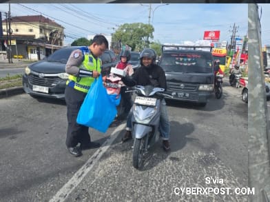 Selain berbagi, personel Ditlantas Polda Riau juga menyapa langsung para pengguna jalan, pengendara roda dua dan roda empat, petugas parkir, hingga pengemudi ojek online. Kegiatan yang dimulai sejak pukul 11.00 WIB ini menjadi sarana penyampaian pesan-pesan keselamatan berlalu lintas secara humanis dan persuasif.