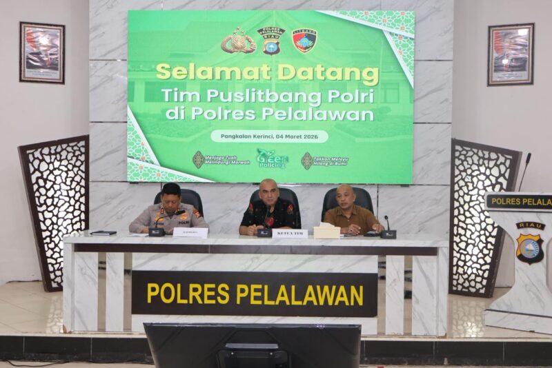 PELALAWAN | CYBERXPOST.com – Polres Pelalawan menjadi lokasi penelitian Puslitbang Polri tentang penyampaian pendapat di muka umum, dengan tema “Peran Polri dalam Penanganan Unjuk Rasa guna mewujudkan Keamanan dan ketertiban Masyarakat” pada Rabu (4/3/2026).