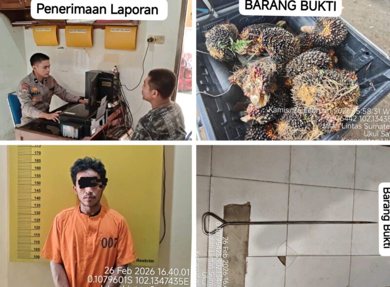 Pelalawan, Cyberxpost.com – Polsek Ukui menerima laporan polisi dugaan tindak pidana pencurian buah kelapa sawit milik Sdri. KARTINI di Perkebunan Buah Kelapa Sawit, Kel. Pangkalan Lesung Kec. Pangkalan Lesung Kab. Pelalawan pada Kamis (26/2/2026).