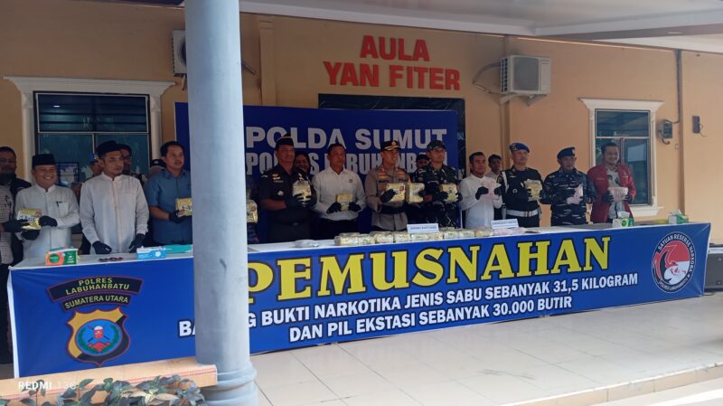 Rantauprapat, Cyberxpost.com– Komitmen dalam menyelamatkan generasi muda dari ancaman narkotika kembali ditunjukkan oleh Polres Labuhanbatu. Kepolisian memusnahkan sejumlah besar barang bukti narkoba hasil pengungkapan dua kasus berbeda yang melibatkan jaringan internasional dan antar provinsi.