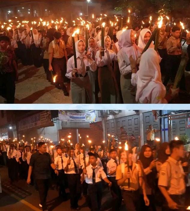 Usai prosesi, ratusan peserta pawai obor yang terdiri dari TNI, Polri, ASN, pelajar SD hingga Aliyah, serta masyarakat, memulai perjalanan dari halaman Gedung SBBK menyusuri Jalan Jenderal Ahmad Yani, menuju Kalapane, dan kembali ke titik awal. Nyala obor yang berpadu dengan semangat para peserta menciptakan pemandangan yang memukau, menyulut rasa bangga dan cinta tanah air.