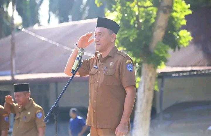 Staf Ahli Bupati, Drs. Muhammad Rizaldi Rambe, memimpin apel gabungan kelompok lingkungan Pemerintah Kabupaten (Pemkab) Labuhanbatu, di Lapangan BKPP, Jalan H. Idris, Kelurahan Ujung Bandar, Kecamatan Rantau Selatan, Senin (8/9/25).