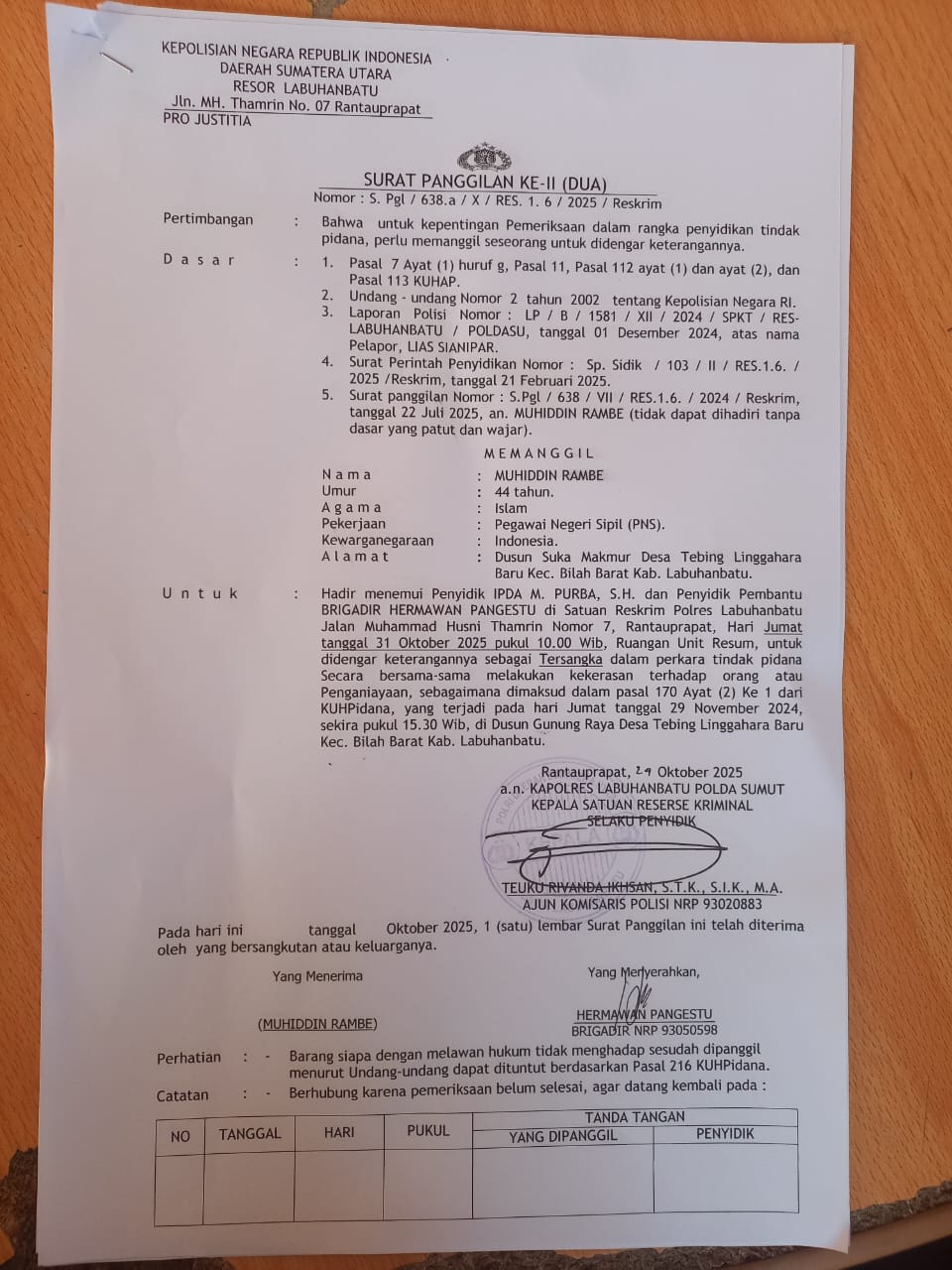 Seiring putaran waktu “pada hari Selasa 10 Pebruari 2026 tersangka datang menemuin penyidik, dan anehnya tidak ada satupun tersangka yang ditahan oleh Satreskrim Polres Labuhanbatu. Sejak kejadian ini menguatkan isu dari diantara tersangka, “dari pada ke mereka 400 juta lebih baik kami kasih Polisi 500.juta.” MR.48 hari Rabu 30 Juli 2025.