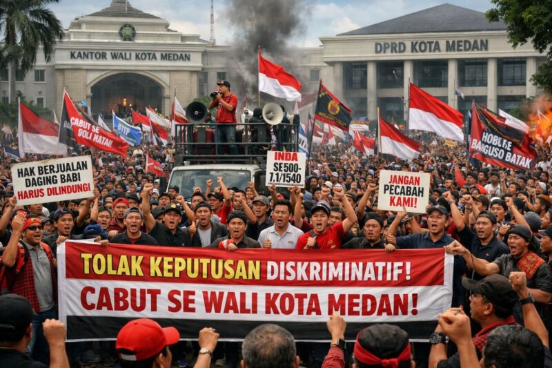 MedanSumut | CYBERXPOST.com – Gelombang penolakan terhadap Surat Edaran (SE) Wali Kota Medan tentang penataan dan pengelolaan limbah penjualan daging non-halal terus menguat. Sekitar 5.000 orang dijadwalkan menggelar aksi unjuk rasa di Kantor Wali Kota dan DPRD Kota Medan pada Kamis (26/2/2026).